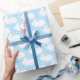 White Bunnies on Pastel Blue Gingham Pattern Wrapping Paper
