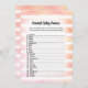 Enjoy playing this Animal Baby Names baby shower game on soft, coral and white watercolor stripes background. Cute, white, bunny rabbit on back with templates created for you.