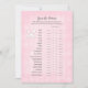 A white bunny rabbit above game title with baby girl pink diamond argyle background. Templates created for you. This is a Guess The Features baby shower game.
