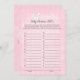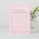 A white bunny rabbit above game title with baby girl pink diamond argyle background. Templates created for you. This is a Baby Products ABCs baby shower game.
