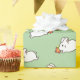 White bunny carrying a present wrapping paper. Super cute design to make your gift extra special.