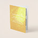 Customisable foil card that you can put your business brand and your products or services. You can put up to 4 products. Customise it and use it as marketing material to advertise your brand name and to promote your business products or services. Foil card that you can use to build brand name awareness. Design colours are white texts on gold foil background on front side and in the inside are black texts on white background. To customise this foil card, upload your business logo, images of your products or services, type your business name, short attractive description of your business and products or services, names of your products or services, address, phone number, e-mail and website or your business social media page. Please check the appearance on all sides after uploading logo, images and typing texts. If the appearance is pleasing to you, you can place your order now. If you need to resize and move the logo, images and texts to fit on this card, please change in the design tool. You can also make other changes according to the appearance of this card that you prefer in the design tool such as changing the background colour, font colour and font style.