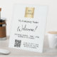 Classic, modern elegant white background. Personalise and add your company name, opening hours, business logo and your QR colde to your website or social media account. Black text.