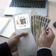 A stylish, classic white background. Personalise and add your business name, your own qr code to your weburl and business logo. White text. With the text x2: Follow us!