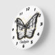 White Butterfly Design Personalised Round Clock
