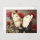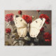 White Butterfly Resting Among Vibrant Red Roses Postcard