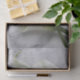 Two calla lilies on embellished white linen, a pretty way to wrap a bridal shower or wedding gift