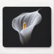Delicate white lines of a calla lily blossom swirl gracefully around a central orange stamen
