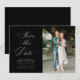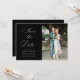 lovely white script lettering black wedding save the date wedding card. The text and colors can be edited.