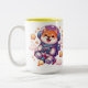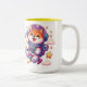 White camping cup. Realistic mug mockup template with sample design. Summer camp. Vector. Vintage typography design with cute doll