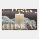 Beautiful white candle, ornaments and blanket throw on the front of this rectangular sticker features Merry Christmas in chic lettering.