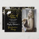 Graduation party invitation in white on black and gold colours. Created with white cap, white balloons and faux gold glitter, with space for your own photo. All text front and back already formatted and ready for your own text details. Other colours available in this same design. Photo credit: Pixabay image by Lorri Lang