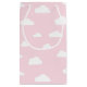White Cartoon Clouds on Pink Background Pattern Small Gift Bag