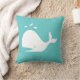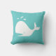 part of the ocean theamed decore white whale on teal blue pillow on one side and teal and white strip on back.