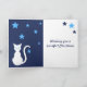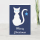 A white cat with an icy blue star hanging from their tail. The front of the card reads "Merry Christmas" and the inside says "Wishing you a purrfect Christmas"