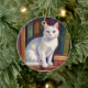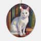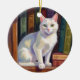 White Cat Drawing Ceramic Ornament