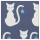 A silhouette cartoon of a white cat with light blue eyes against navy (the background colour can be changed). A blue star hangs from the cat's tail.