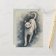 Postcard in an illustration of a graceful, long-haired white cat with piercing blue eyes strides confidently forward against a smoky, cloud-like background. Rendered in a detailed ink illustration style, the image evokes a blend of traditional Chinese ink painting and contemporary digital art.