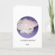 Customisable card with Missy peeking out from her white bonnet with pink flowers.
