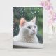 Pretty white cat looking out of a window with raindrops for get well soon.