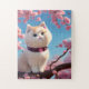 An Adorable White Cat In A Spring Floal Tree Jigsaw Puzzle.