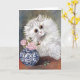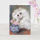 A blank greeting card with the painting by British artist Louis Wain (1860-1939), White Cat. A lovely portrait of a white Persian cat next to a blue and white porcelain vase with pink roses. Wain was known for his large-eyed cat illustrations.