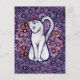 White Cat Mauve Daisies Postcard