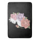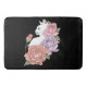 A profile of a white cat with pink, peach and lavender coloured roses in backdrop of black