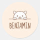 Simple cartoon illustration of a cute white cat peeking from behind a divider. Customise with your kid’s name.