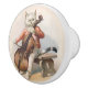 A beautiful ceramic cabinet knob featuring a snazzily dressed white cat playing the cello. The painting is a wonderful example of Victorian- era anthropomorphic art.