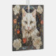 This is a pretty glass ornament with a stained glass theme, featuring a beautiful long haired white cat with penetrating yellow eyes. The cat portrait is set inside a frame filled with white and red roses and deep green leaves. This makes a nice stocking stuffer or decoration for the household who loves cats.