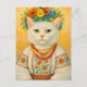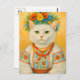 White Cat Ukrainian Flower Wreath Postcard for Postcrossing