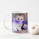 White Cat with Purple Flower Collar Painting Coffee Mug