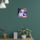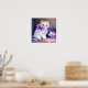 White Cat with Purple Flower Collar Painting Poster