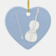 White Cello & Bow Light Blue Custom Heart Ceramic Ornament