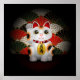 A Japanese lucky cat, illustrated by Megan Anderson. The kanji on the coin represents "longevity".