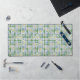 White chamomile flowers on a green blue chequered desk mat