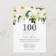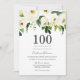 White Champagne Flowers 100th Birthday Party Invitation