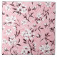 White cherry blossom branches painted with watercolors and ink on a pink background