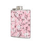 White cherry blossom branches painted with watercolors and ink on a pink background