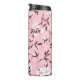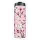 White cherry blossom branches painted with watercolors and ink on a pink background