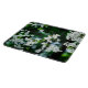 White cherry blossoms against the background of fresh green leaves. Spring in the Emerald City. Prints and gifts for fun and good mood.