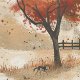 White & Chestnut Brown Horse Barn Autumn Ranch Wallpaper