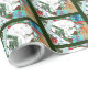 A white cat has decided to sleep right in the middle of all of the Christmas wrapping supplies. Never get up for a minute with a cat!