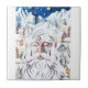 A mystical bearded figure is composed of intricately cut paper, appearing amidst a snowy village set against mountainous terrain. The serene face is surrounded by detailed elements of winter, including snowflakes and frosted rooftops. Digital Art