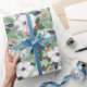 White Christmas flowers and red berries pattern Wrapping Paper
