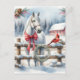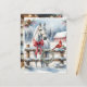 Personalised farming themed Christmas postcard with a pretty white horse, a pretty red cardinal on the fence and a rustic barn in the background of a snowy winter day done watercolor ai art.