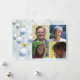 A snowy setting with white Christmas ornaments provides an attractive background for your photos. The back of the card has the same design (without the photos) and with text "Merry Christmas and Happy New Year" along with the names of those in the photos. The text is easily changed with the template. However, if additional changes are wanted (different type font, color, size, or position) select "Personalize this template" then select "Edit using Design Tool."