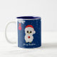 White Christmas Owl on Blue Two-Tone Coffee Mug