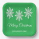 White Christmas snowflakes Merry Christmas green Paper Plate